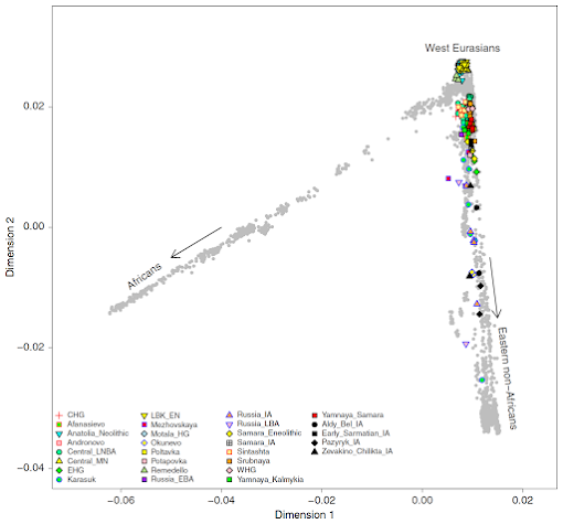 While the genetic findings point to a central role for the Yamnaya in spreading Indo-European languages, tipping the scales definitively in favor of some variant of the steppe hypothesis, those findings do not yet resolve the question of the homeland of the original Indo-European languages, the place where these languages were spoken before the Yamnaya so dramatically expanded. Anatolian languages known from four-thousand-year-old tablets recovered from the Hittite Empire and neighboring ancient cultures did not share the full wagon and wheel vocabulary present in all Indo-European languages spoken today. Ancient DNA available from this time in Anatolia shows no evidence of steppe ancestry similar to that in the Yamnaya (although the evidence here is circumstantial as no ancient DNA from the Hittites themselves has yet been published). This suggests to me that the most likely location of the population that first spoke an Indo-European language was south of the Caucasus Mountains, perhaps in present-day Iran or Armenia, because ancient DNA from people who lived there matches what we would expect for a source population both for the Yamnaya and for ancient Anatolians. If this scenario is right, the population sent one branch up into the steppe—mixing with steppe hunter-gatherers in a one-to-one ratio to become the Yamnaya as described earlier—and another to Anatolia to found the ancestors of people there who spoke languages such as Hittite.